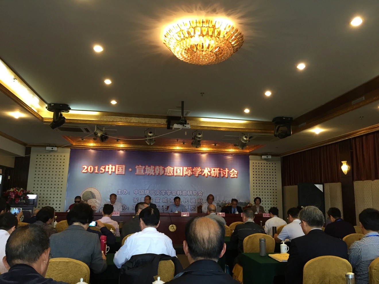 2015年10月24日,我们到达宣城市敬亭山度假村,参加“2015年中国宣城韩愈国际学术研讨会”,聆听与会的专家学者们做韩愈文化相关的学术报告,受益匪浅,对于我们的论文习作亦提供了新思路和新启发。谷曙光老师在会上作了《论理学宗师朱熹对韩愈诗歌的校勘与评价》的学术发言。