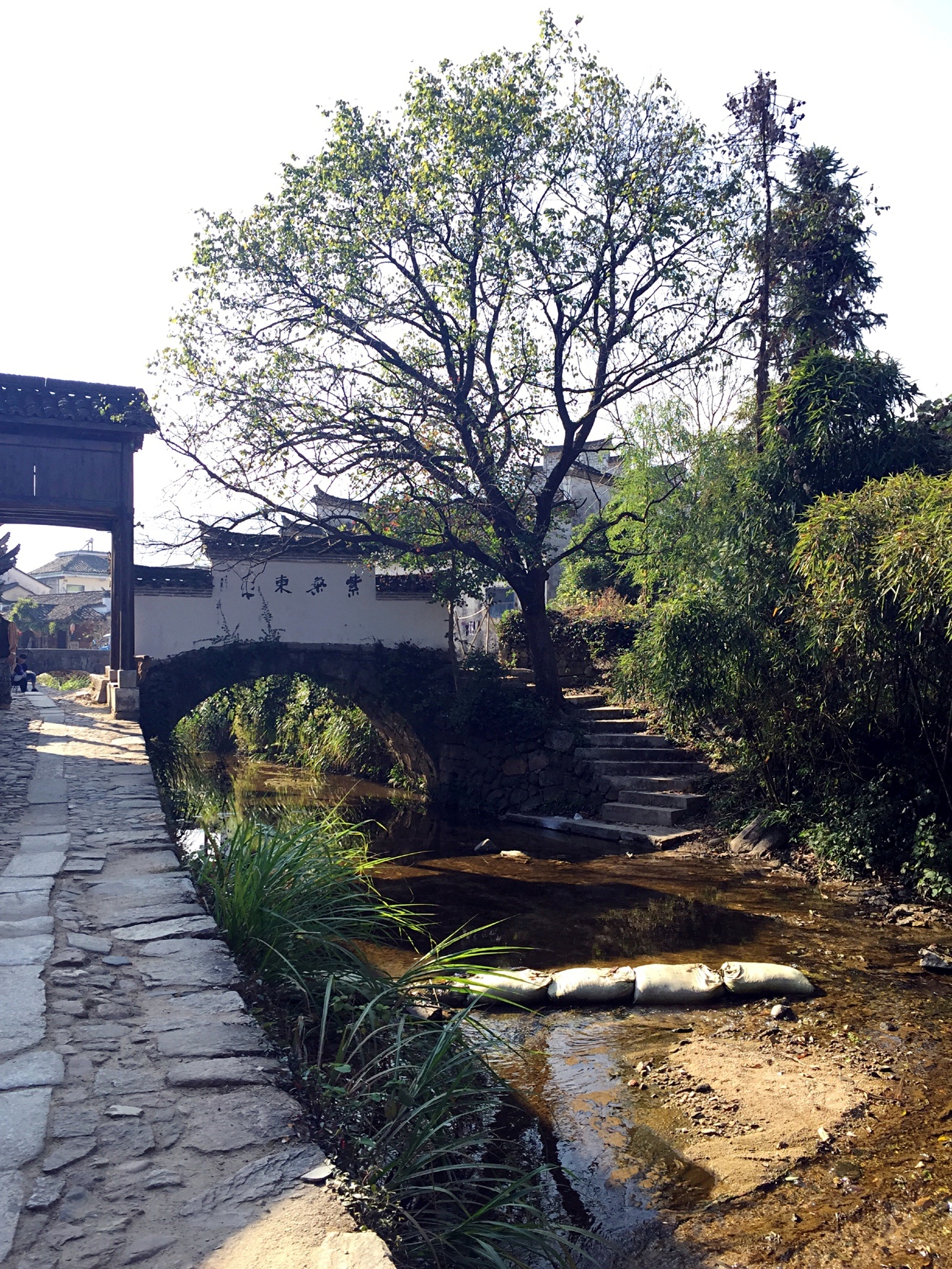 23日下午,从桃花潭转车到查济古村落。查济古村,距泾县县城50公里。原有108座桥梁,100座祠堂、108 座庙宇,现尚有古代建筑140余处。其中桥梁40余座,祠堂30座,庙宇4座。是查济村保存较为完整的古建筑群。其中有元代建造的“德公厅屋”,处于村中水郎巷,三层门楼,厅内前檐较低,檐柱楠木质,粗矮浑圆,柱础为覆盘式,无雕琢。还有明代的“涌清堂”、“进士门”,雕刻细腻,结构精致。