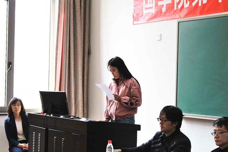 随后,李萌昀副教授介绍了大赛的评奖工作。学术论文组按照专业领域主要分为四组,分别是文学组、史学(含小学)组、经学与子学组、西域组,各组的本科生论文与研究生论文分别进行评审。文学创作组由国文教研室负责评审,不区分本科生和研究生。