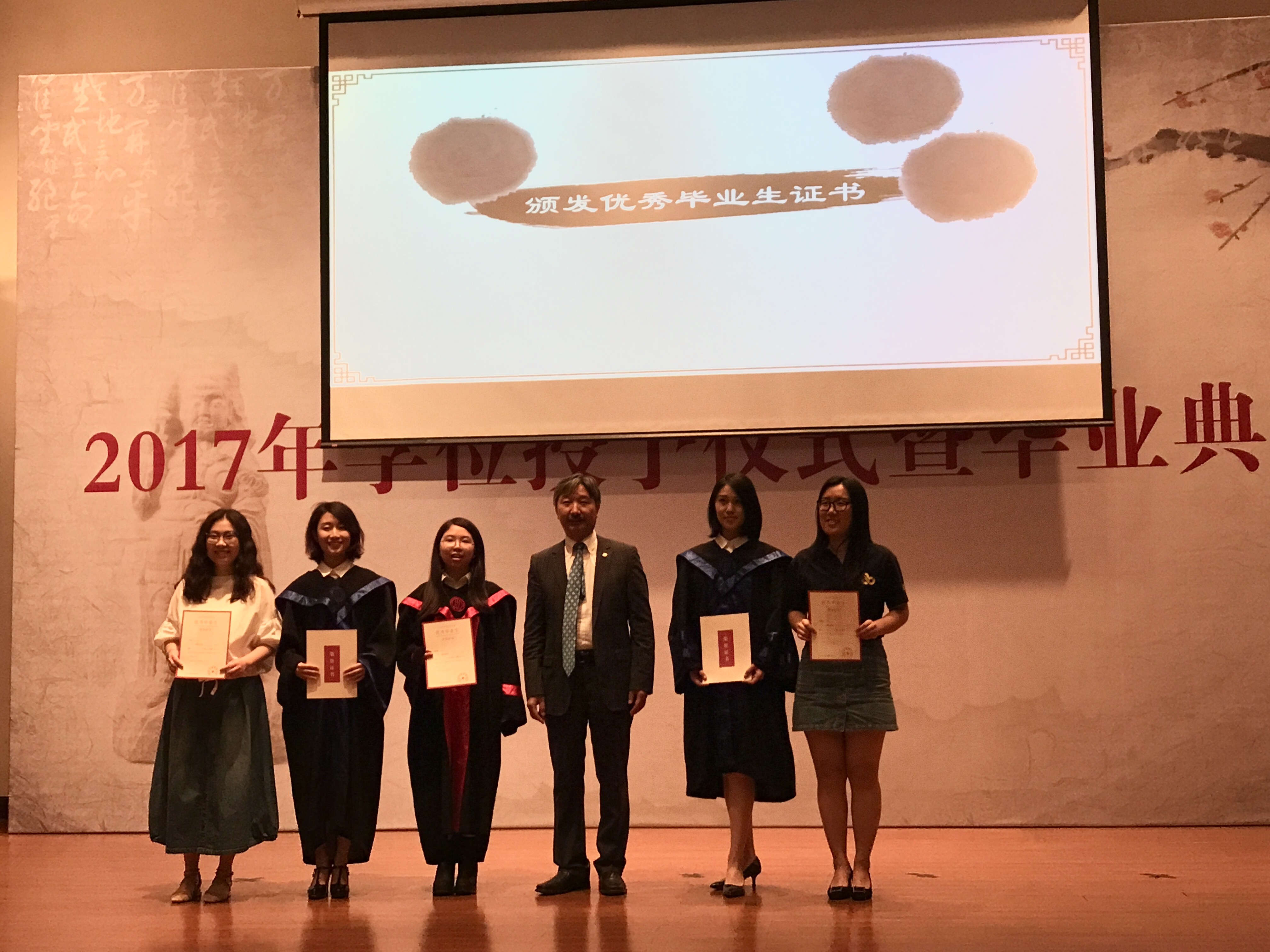 接下来,乌云毕力格常务副院长、汪永红书记、诸葛忆兵副院长、张华副书记为获得2017年市、校、院三级优秀毕业生荣誉称号的毕业生颁发荣誉证书。