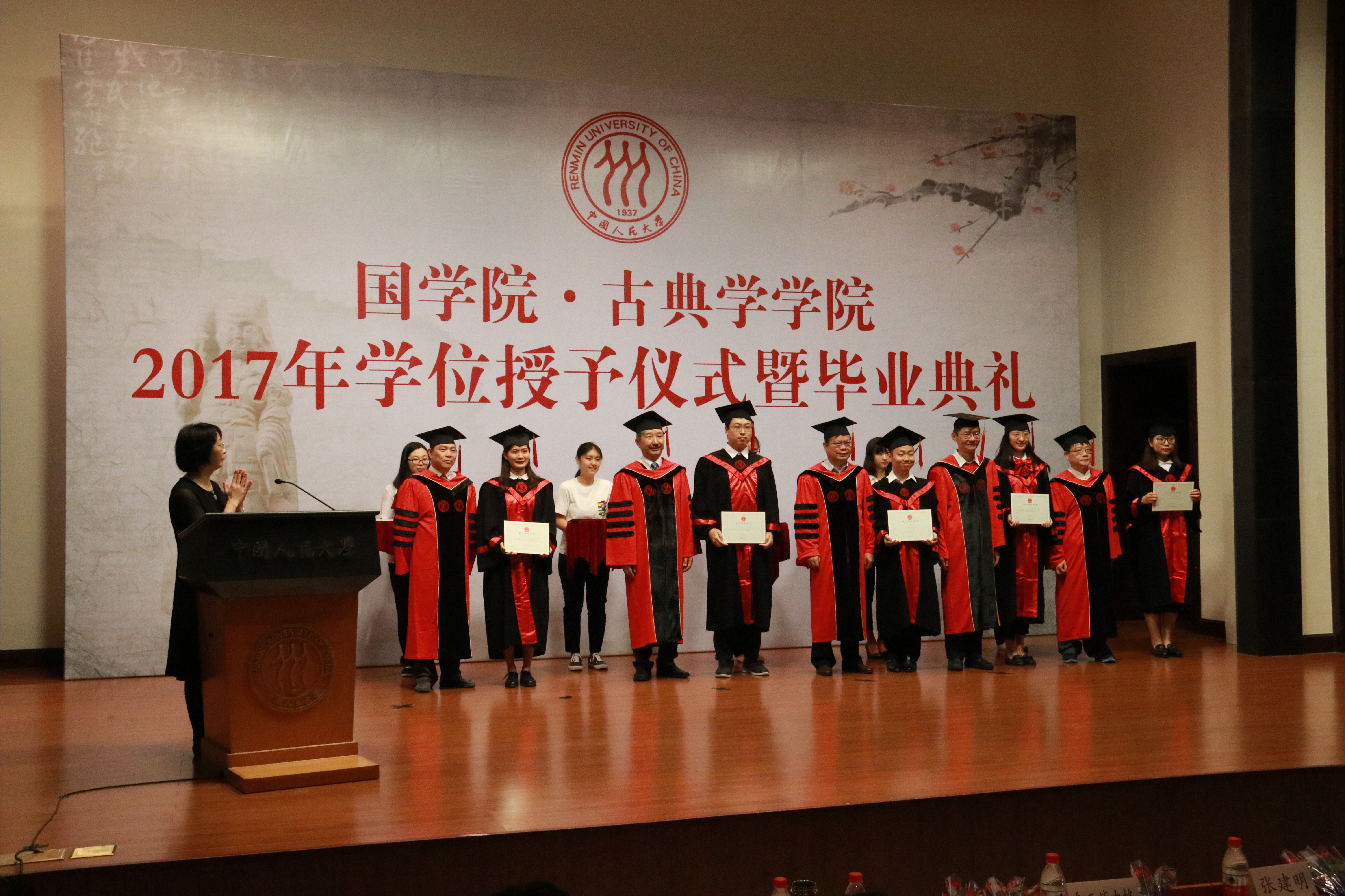 古典学学院共有14人获得博士学位, 38人获得硕士学位, 49人获得学士学位。其中,其中,授予专门史博士学位8人,中国古代史博士学位3人,中国古代文学博士学位3人。授予中国古代史硕士学位9人,中国古代文学硕士学位13人,中国哲学硕士学位5人,专门史硕士学位11人。授予文学学士学位17人,历史学学士学位23人,哲学学士学位9人。