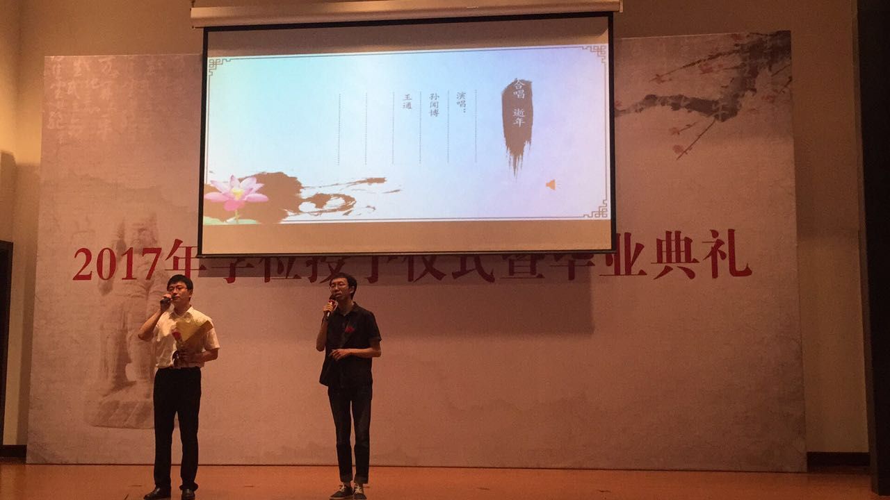 最难留是时间,最难忘往事,最流连是过往,第二篇章——“最是人间留不住”随后进行。开始最先播放了毕业视频,其后2015级硕士生王葆葆、2013级本科生苏辉煌带来合唱“那些年”,那些年,那些人,那些同窗事如电影般一幕幕呈现在眼前。2013级本科生何赟超、郭锰表演的相声“全能先生”幽默诙谐,全场时不时爆发出热烈的掌声和爽朗的笑声。