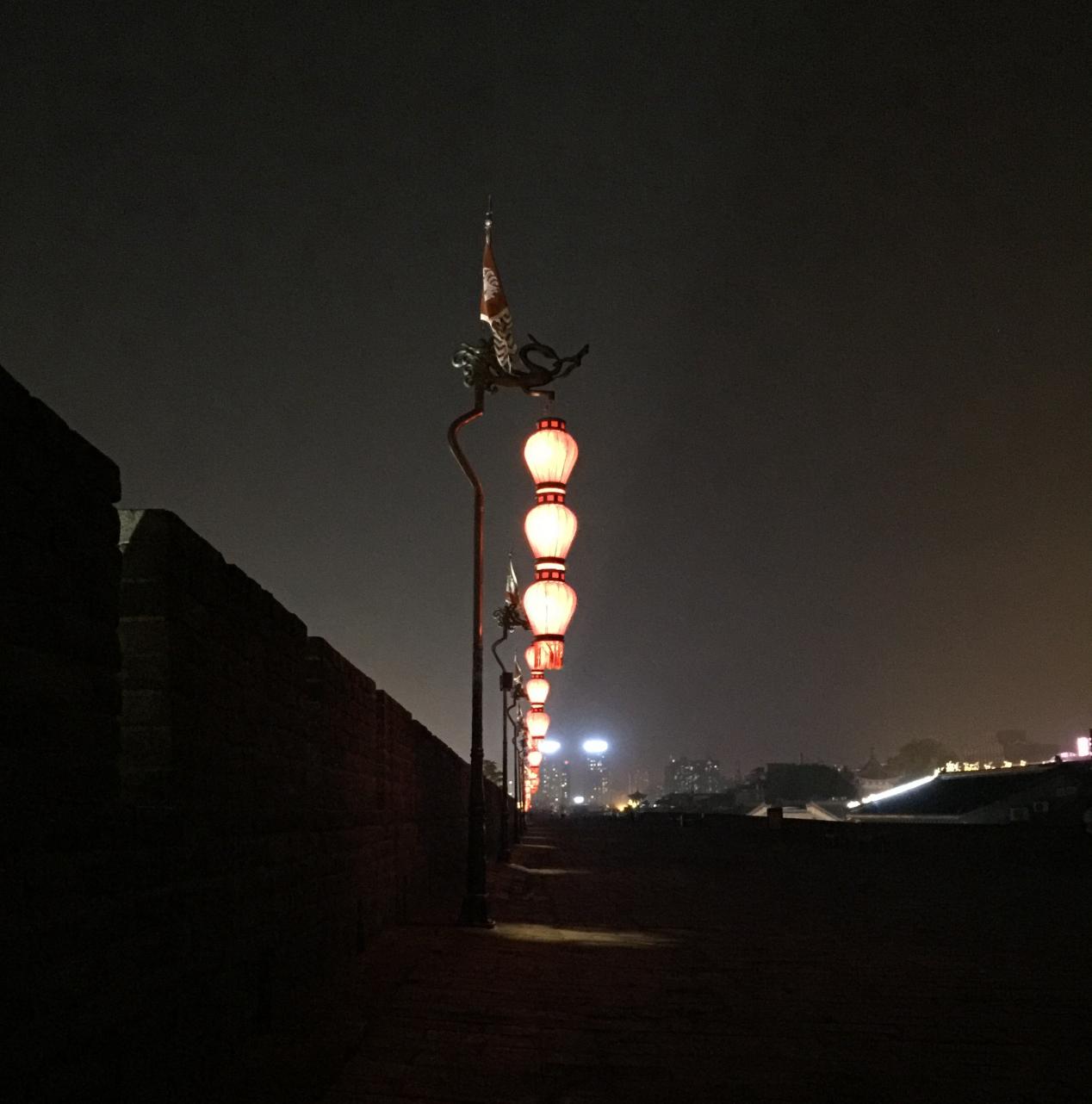 晚上,我们登上了明城墙遗址,在夜色中与西安古城融为一体,感受这座城市无时不刻不在流动的历史气息。西安城墙是明朝出年在明太祖朱元璋的政策“高筑墙、广积粮、缓称王”的指导下,在唐皇城的基础上建成的。完全围绕“防御”战略体系,城墙的厚度大于高度,稳固如山,墙顶可以跑车和操练。城墙包括护城河、吊桥、闸楼、箭楼、正楼、角楼、敌楼、女儿墙、垛口等一系列军事设施。城墙自建成后历经三次大的整修。自1983年以来,陕西省和西安市人民政府对这座古城墙进行了大规模修缮,补建已被拆毁的东门、北门箭楼、南门闸楼、吊桥,并建成环城公园,从而使这座古建筑焕发了昔日风采,成为西安的一大旅游景观。