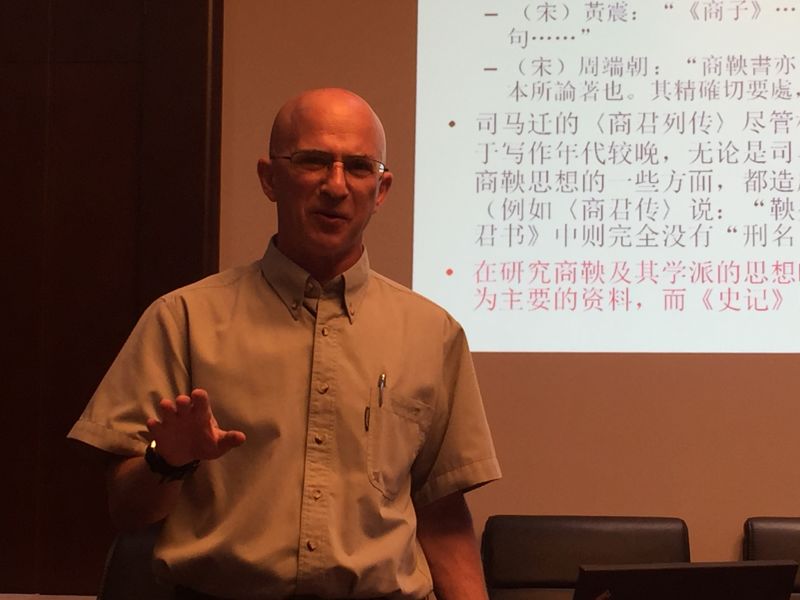 尤锐教授用流利的汉语,围绕“‘法治’还是‘社会工程学’?——《商君书》的政治思想新论”这个讲座题目,从“学者对《商君书》的偏见、《商君书》的重要性、《商君书》与“法治”、 商鞅思想的基础、战国诸子的国家起源论、战国诸子对性、“名”、利的态度、商鞅与爵制(军功爵制)、商鞅“社会工程学”的有效性、商鞅与道德、《商君书》各篇的成书年代、《商君书》的历史地位等方面全方位、多角度阐述了他对《商君书》研究的最新成果,讲座激情澎湃、热情洋溢,充分展示了尤锐教授新颖的研究视角、不落窠臼的理论观点。