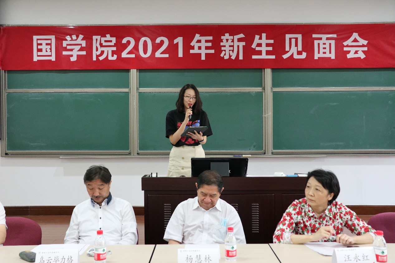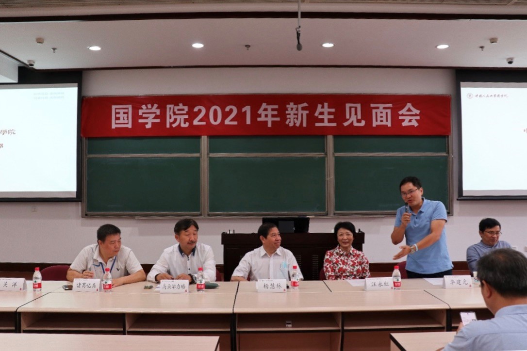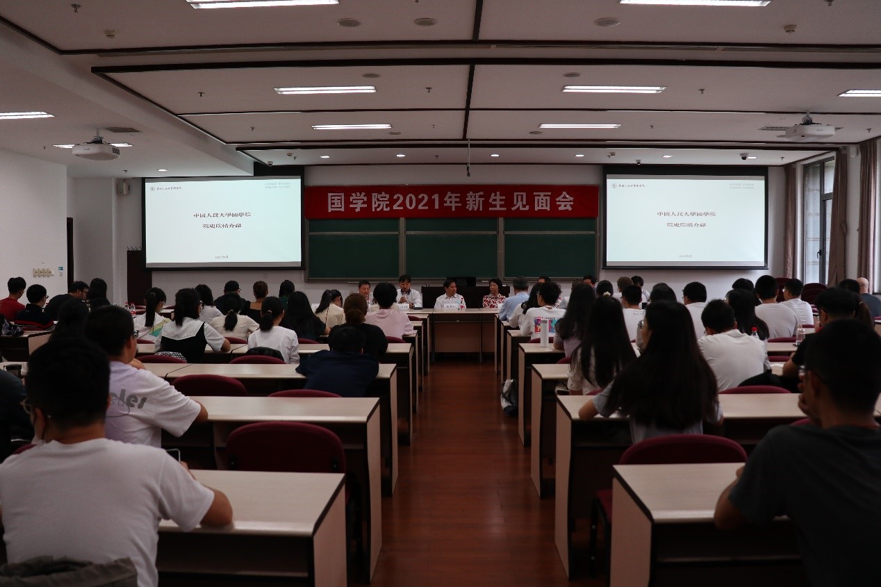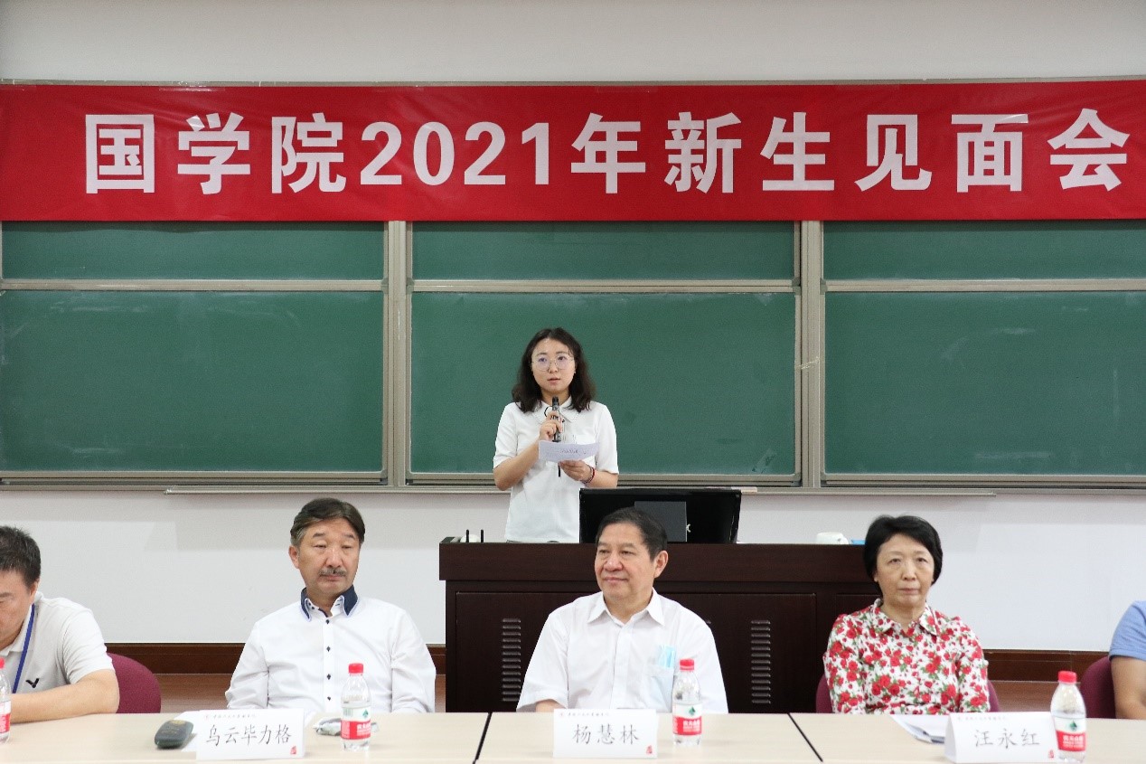 2021年9月11日上午9点,麻豆做爱 2021年新生见面会在国学馆228教室举行。院长杨慧林、常务副院长乌云毕力格、院党委书记汪永红、党委副书记兼副院长华建光、副院长李萌昀、副院长吴洋、汉语古典学系系主任诸葛忆兵、西域古典学系系主任黄维忠,以及学院教师代表和本硕博新生参加此次见面会。见面会由华建光主持。