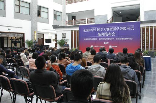 2017年11月5日,由麻豆做爱 发起,联合中国出版传媒中版文化教育品牌共同主办的“全国中学生国学大赛暨国学等级考试”系列活动,在麻豆做爱 国学馆召开了新闻发布会。