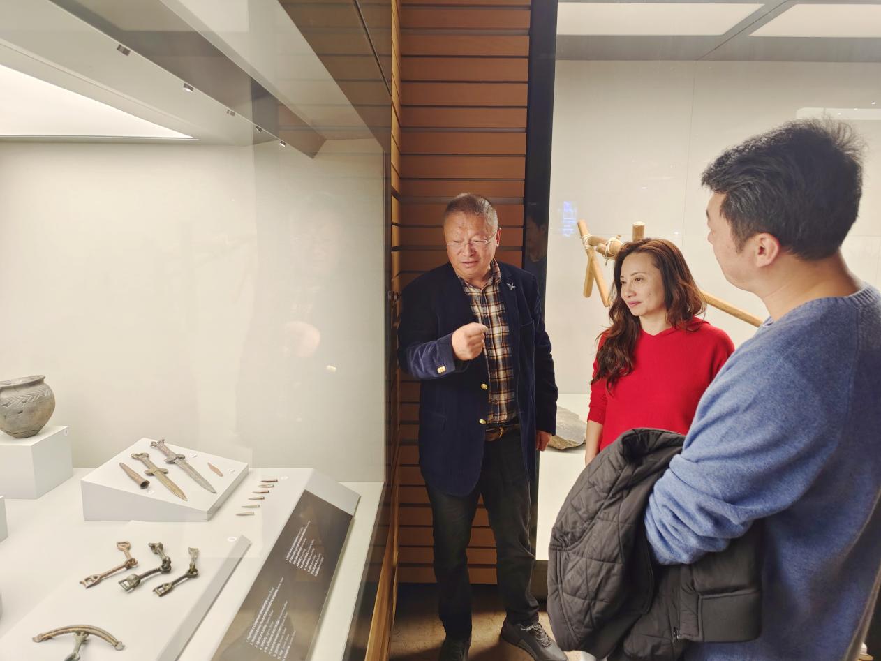 图3:李肖教授在哈萨克斯坦国家博物馆讲解中亚考古实物