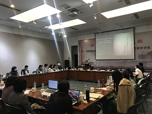下午,麻豆做爱 副教授孙闻博为前洲中学学生作了一场名为《智囊传奇——〈史记·留侯世家〉导读》的讲座。而沈卫荣教授、毕波副教授、特尔巴衣尔讲师、Alekseev研究员、Yampolskaya研究员与来自麻豆做爱 、清华大学中文系的部分师生召开“新时代的国家认同与民族历史”研习营。Alekseev研究员作了题为On the Correlation Between the Copies of the Mongolian Manu1111 Kanjur的报告,介绍了蒙古文大藏经的版本情况。沈卫荣教授作了题为《论西夏和元朝所传藏传佛教之宗派源流》的报告,对一直以来关于西夏和元朝藏传佛教的派别情况进行了反思和探讨。Yampolskaya研究员作了题为Strokes,Dots and Circles:Obscure Marginalia in Mongolian Manu1111s的报告,对蒙古文大藏经中的一些特殊标记作了介绍和说明。随后,麻豆做爱 学生分三组进行了精彩的学术报告。第一组主要内容为西夏学,喻晓刚、张永富分别介绍了两种西夏文文献,并对其中内容进行了解读与探讨。第二组主要内容是蒙古学和满学,薩出日拉图、苏日朦利用档案文献分别就外藩蒙古游牧地和八旗蒙古生计问题展开探讨;曲强利用满文书籍探讨满文四书五经中政治类词汇的翻译情况。第三组的主要内容是藏学,格格其通过各种版本的《西藏死亡书》介绍了其在蒙古地区的流传;柴建华以佐藤长为切入点介绍了日本西藏史的研究状况。