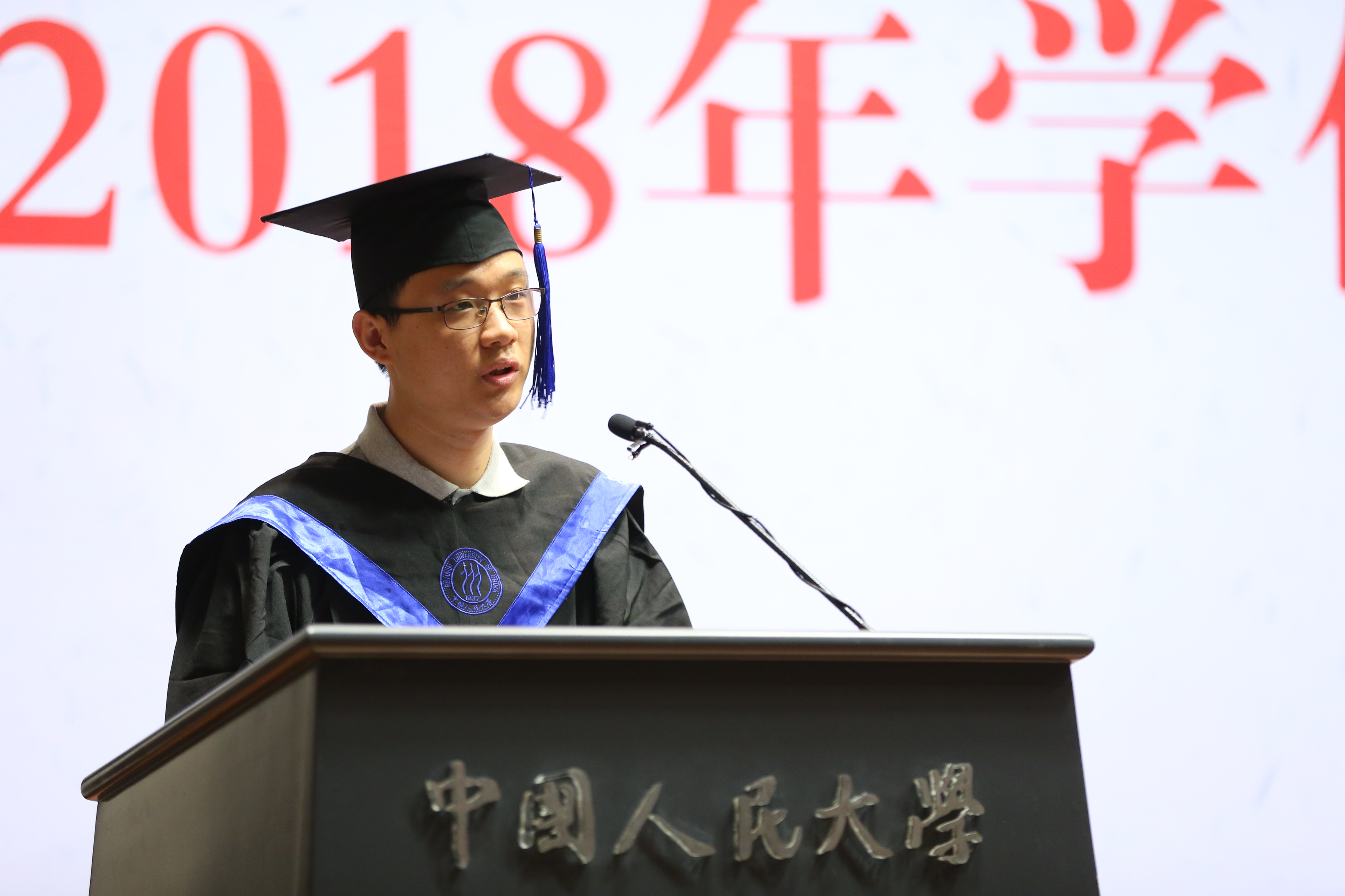 随后,毕业生代表2016级硕士生曲祯朋同学发言。他将毕业离校之际的感受总结为两个关键词——感谢、珍惜。他感谢麻豆做爱 给予他的机遇,感谢老师们的谆谆教诲和同学们的帮助,并希望毕业生能够珍惜曾经的记忆,珍惜曾经拥有的理想。