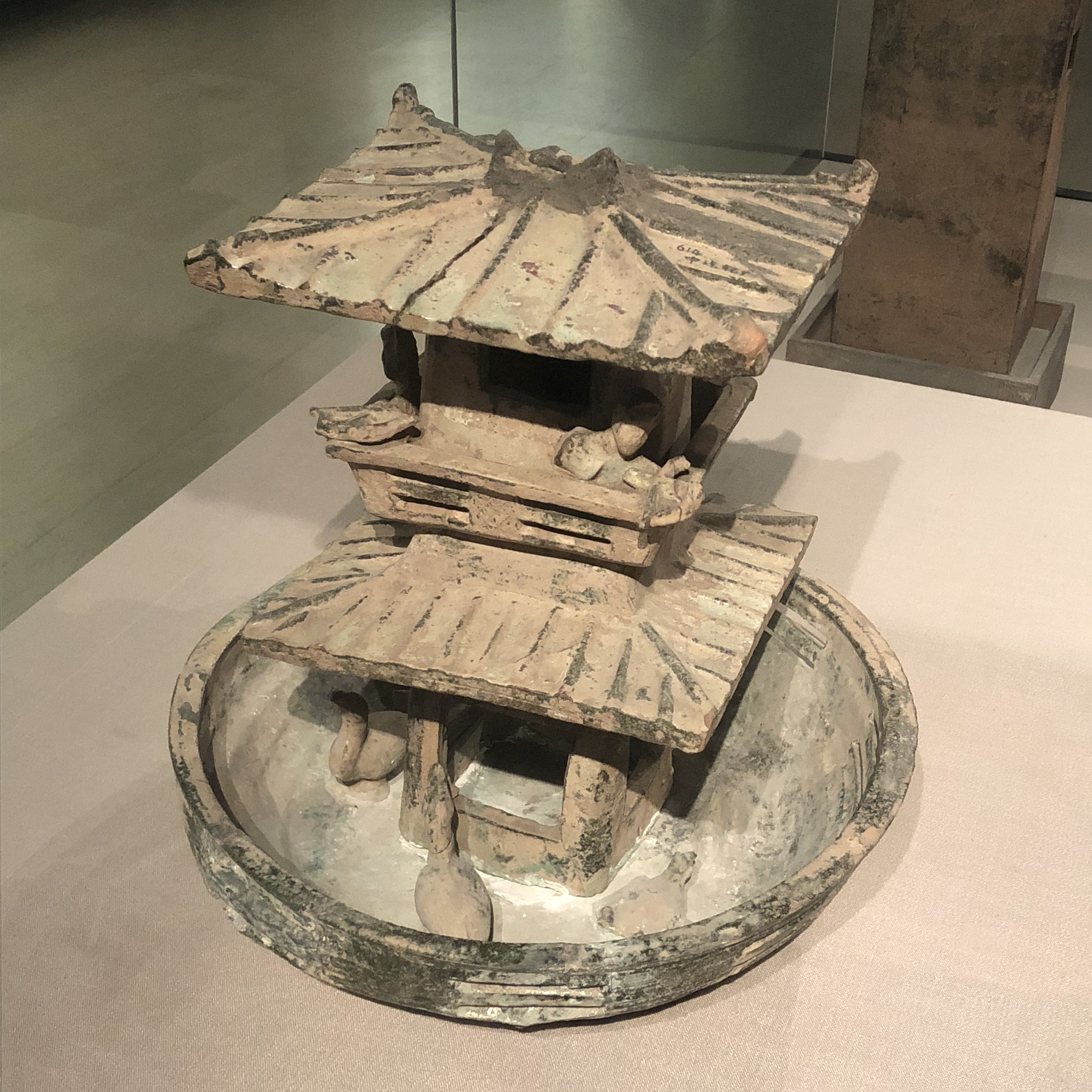 (“关弓射鹄”二层绿釉陶水榭)