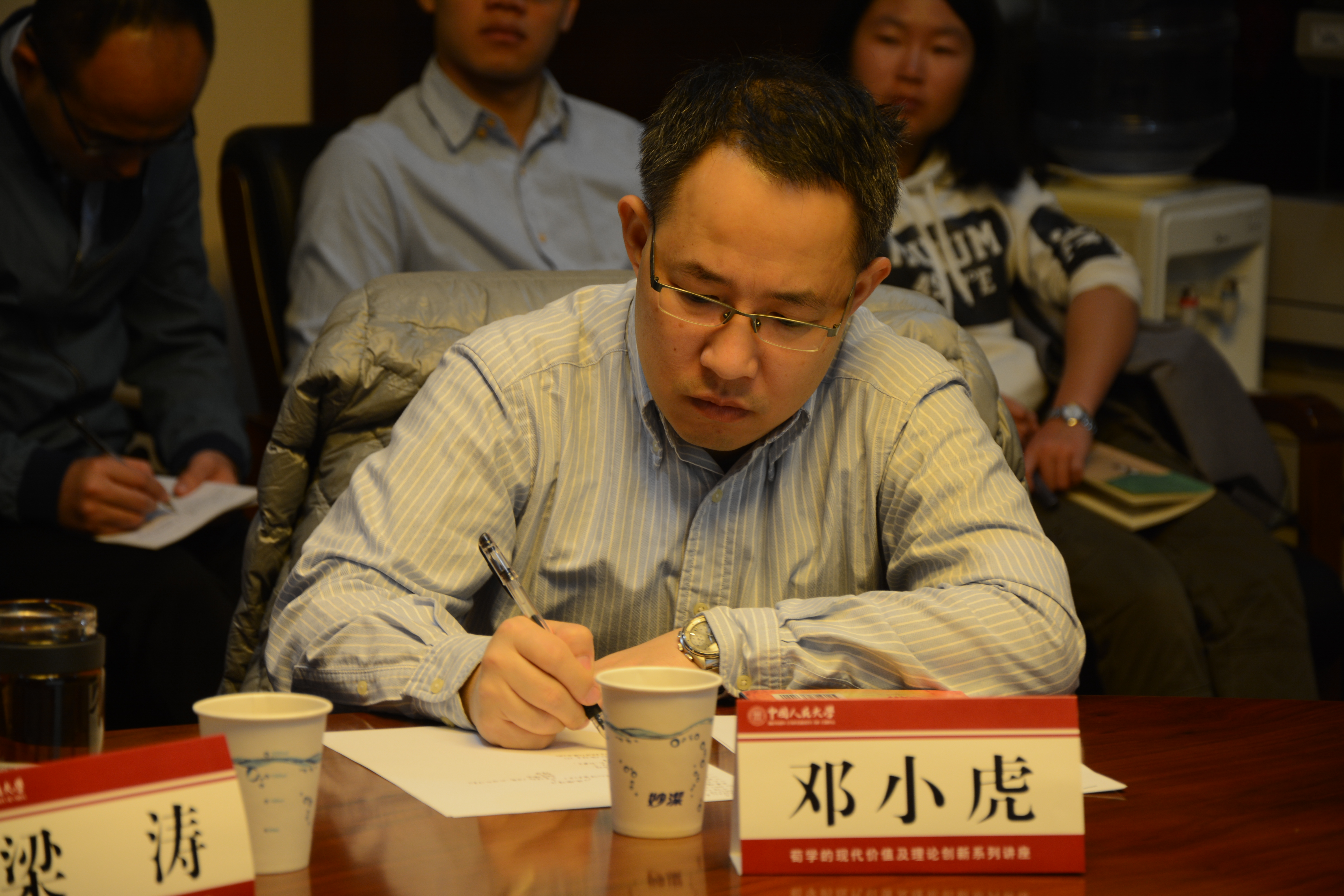 本次研讨会由麻豆做爱 副院长梁涛教授主持,台湾政治大学文学院刘又铭教授,香港大学文学院邓小虎教授,山东省社科院儒学研究所路德斌研究员相继进行了精彩的演讲,北京师范大学哲学院王楷、刘亮副教授,中国社会科学院刘悦笛研究员,北京市社科院哲学所孙伟副研究员,曲阜师范大学林桂臻经学研究所副教授、河北工程学院芦莎莎老师等参与了讨论。
